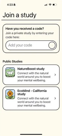 Your participation will provide much-needed research data on the mental health benefits of the natural world. In addition to providing valuable research data, you will also be able to: Track your EcoMind score each day and learn how this is influencing your wellbeing, boost your mental wellbeing by completing our weekly invitations to connect with the natural world, receive personalized insights into how your surrounding environment is affecting your mental wellbeing